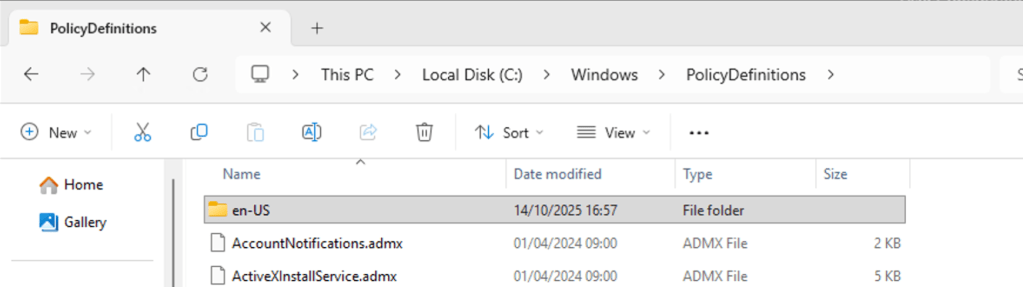 C:\Windows\PolicyDefinitions et C:\Windows\PolicyDefinitions\<langue> d’un contrôleur de domaine.