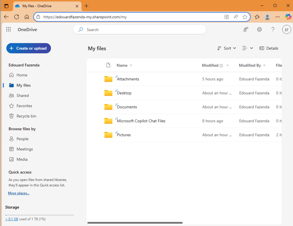 Cela t’ouvrira le navigateur web sur ton OneDrive dans le cloud Microsoft 365 personnel.